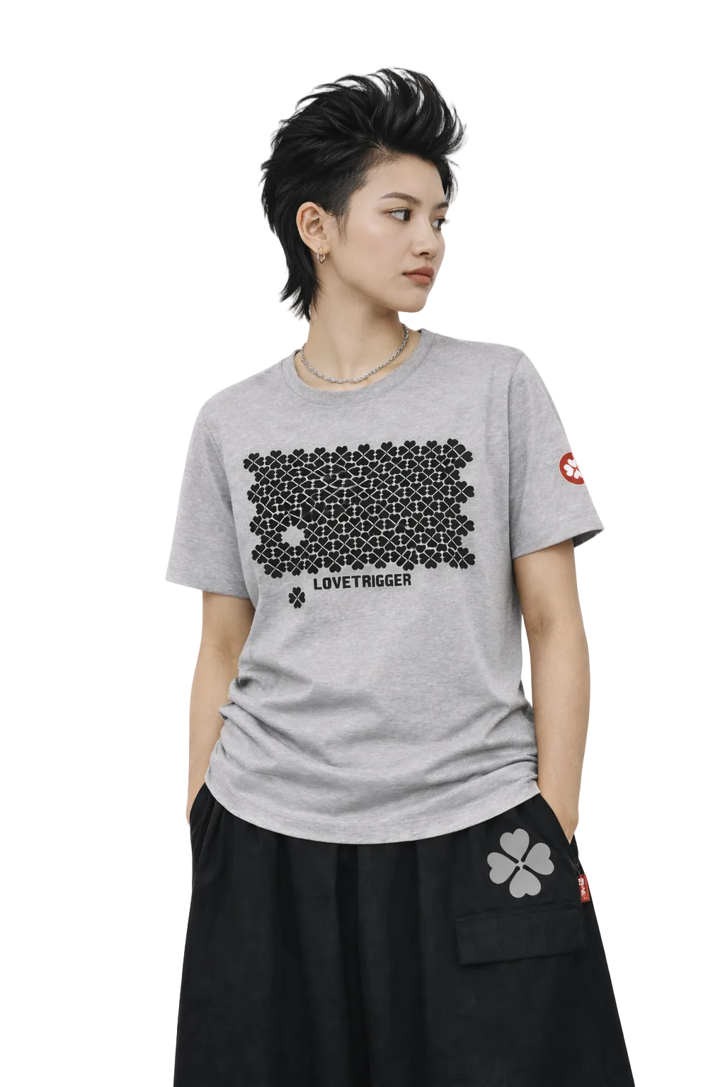 Breite, doppelte Ziernähte am unteren Ende der Ärmel und am unteren Saum des T-Shirts